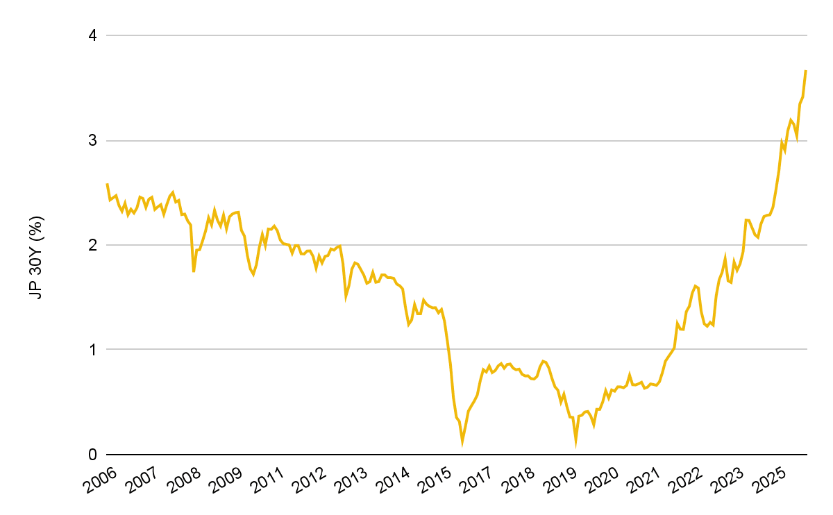 이러한 맥락에서 1월 23일 발표된 일본 소비자물가지수(CPI)와 일본은행의 정책 결정은 채권 시장에 제한적인 안도감만을 제공했습니다. 일본은행은 예상대로 정책 금리를 약 0.75%로 동결하고 신중한 데이터 의존적 기조를 유지했습니다. 가이던스를 통해 정책 입안자들은 재정 불확실성이 고조되고 국채 수익률 곡선의 초장기 구간 압력이 지속되는 가운데, (i) 추가적인 금리 변동성에 대한 용인 수준과 (ii) 금융 안정 개입의 임계값에 특히 주의를 기울이며 채권 시장 상황을 모니터링하는 데 집중하고 있음을 재확인했습니다.