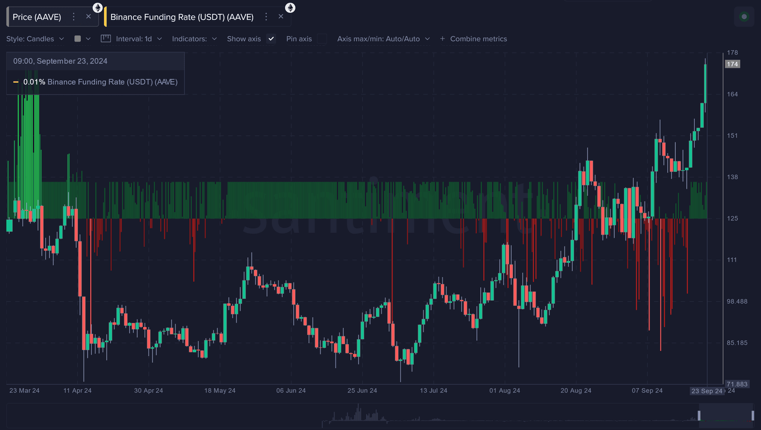 There were also a significant amount of non-believers that had been shorting the asset quite aggressively on Binance during the first three weeks of September. Even though these shorts have dissipated for now, it still appears that bears have AAVE on their radars as a potential short candidate. When significant shorts appear, probabilities of rapid rises (like we've been seeing for AAVE) only increase.
