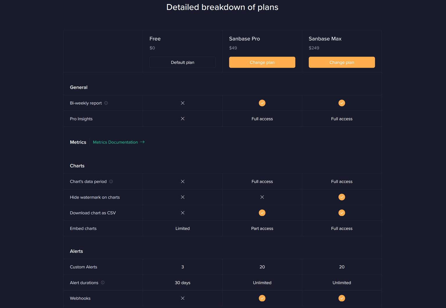 π€ With a free plan, you can enjoy 3 free alerts and have them active for 30 days. With a Sanbase Pro or Max plan, your available alerts skyrockets to 20 with unlimited durations. Choose your plan here, and see what others in crypto can't!