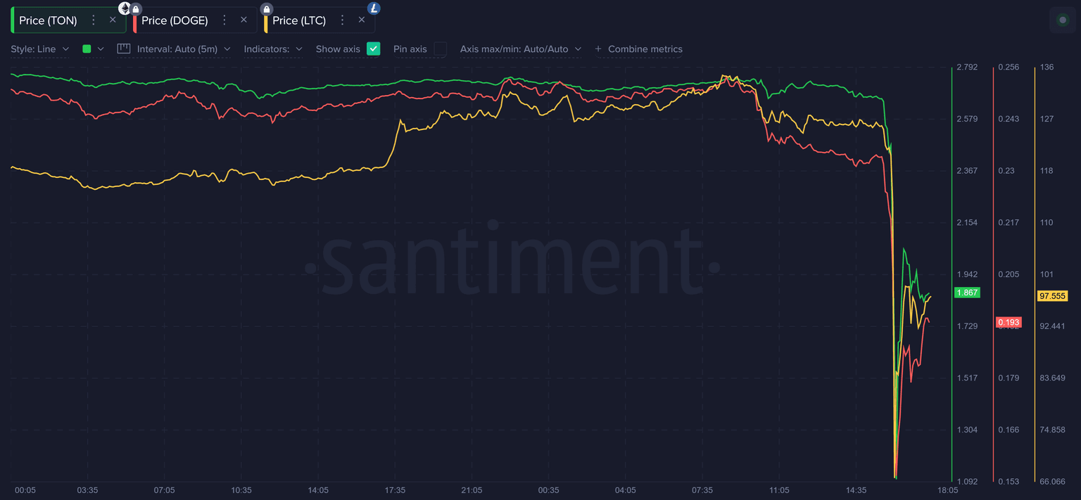 Over the span of less than an hour, we saw market cap collapses from several top caps, temporarily reaching as low as: