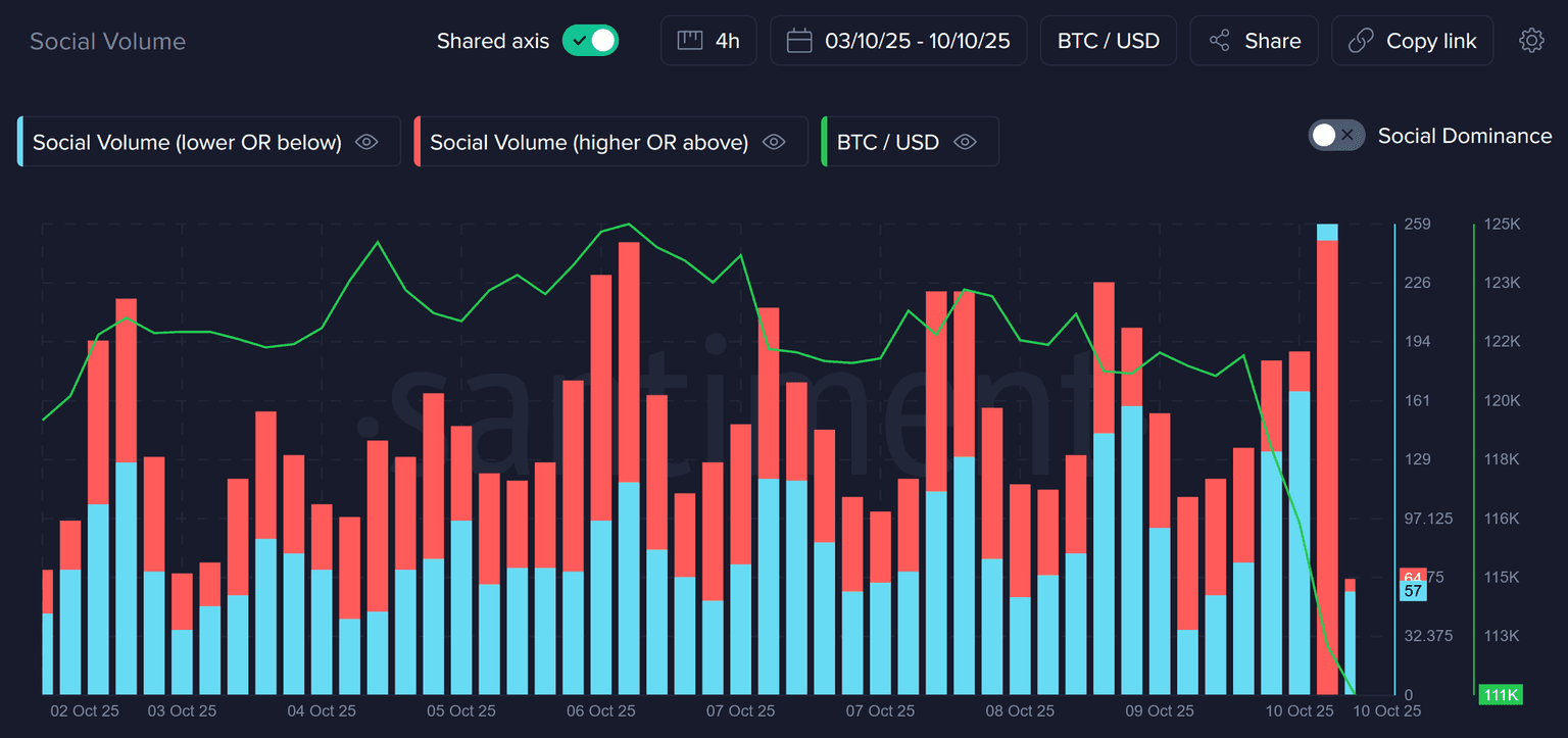 And what does a double digit percentage drop of Bitcoin do to the retail crowd? Well, for the first time in October, we've seen a 4-hour stretch where the words "lower" or "below" have gotten a higher frequency of mentions than "higher" or "above". This is a big deal, as it means the retail crowd has gotten spooked enough by this pullback to begin expecting markets to continue going down. All it took, apparently, was a reminder that crypto could actually fall off of a mild cliff for the first time in a long time.