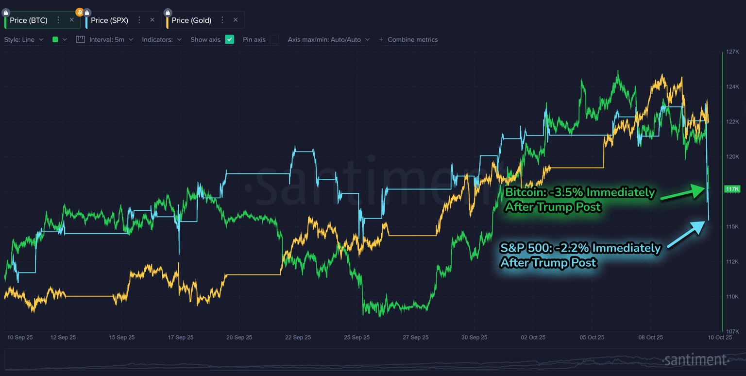 Regardless, the reaction was swift. Traditional markets braced for turbulence. U.S. stocks sold off hard as investors feared a new wave of trade friction. Reports indicate the S&P 500 fell by around 2 percent or more in early trading after the post. Safe-haven assets and interest rates moved in response: bond yields dropped, and gold surged past 122,000 to below $119,000, dropping roughly 3β4 percent in intraday movement.