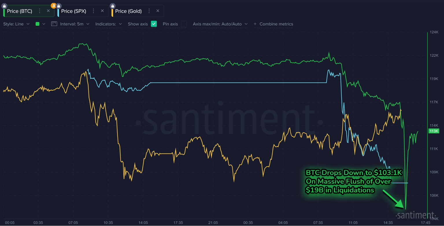 But if you're reading this now, you know that the retrace from the US President's Truth Social post was just the beginning. Approximately 6 hours after the initial downswing, we saw something more akin to a full-on market flash crash, with Bitcoin briefly falling all the way down to ~113K.