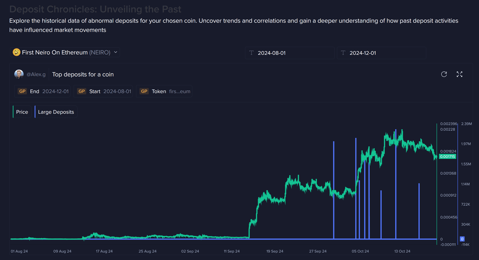 This, of course, doesn't mean these two whales instantly sold as soon as they moved the coins to their respective exchanges, either. Sometimes it's simply to get things 'queued up' to sell at their exact target prices. Either way, this is generally a classic top signal. And we would not have been able to wade through the thousands of altcoins to find these huge deposits without the help of this new dashboard.