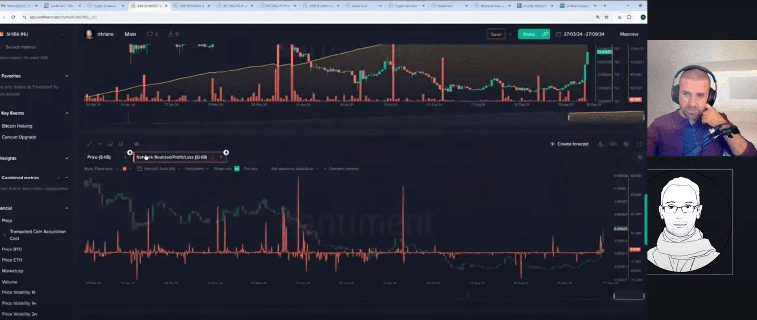 The live stream concluded with a detailed look at Shiba Inu's metrics. Brian noted that Shiba Inu's social dominance is at its highest level since May 28th, which coincided with a market top. He also pointed out that the supply distribution among different wallet sizes indicates that smaller holders are increasing, while larger holders are taking profits. This pattern suggests that Shiba Inu may be approaching a top, and caution is advised.