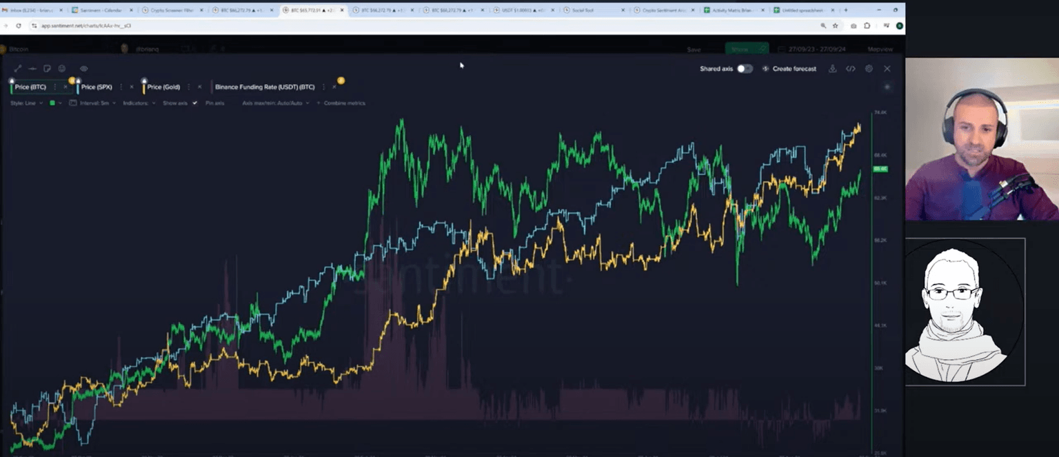 In the latest Santiment market update, Brian Quinlivan, Director of Marketing, and Maksim Balashevich, CEO of Santiment, dive deep into the latest crypto trends. From market volatility to on-chain data, they provide a fascinating look at how investors can use data to navigate the unpredictable world of crypto. In this article, we break down the key takeaways from their discussion, including the impact of meme coins, social sentiment analysis, and on-chain metrics that could signal future market movements.