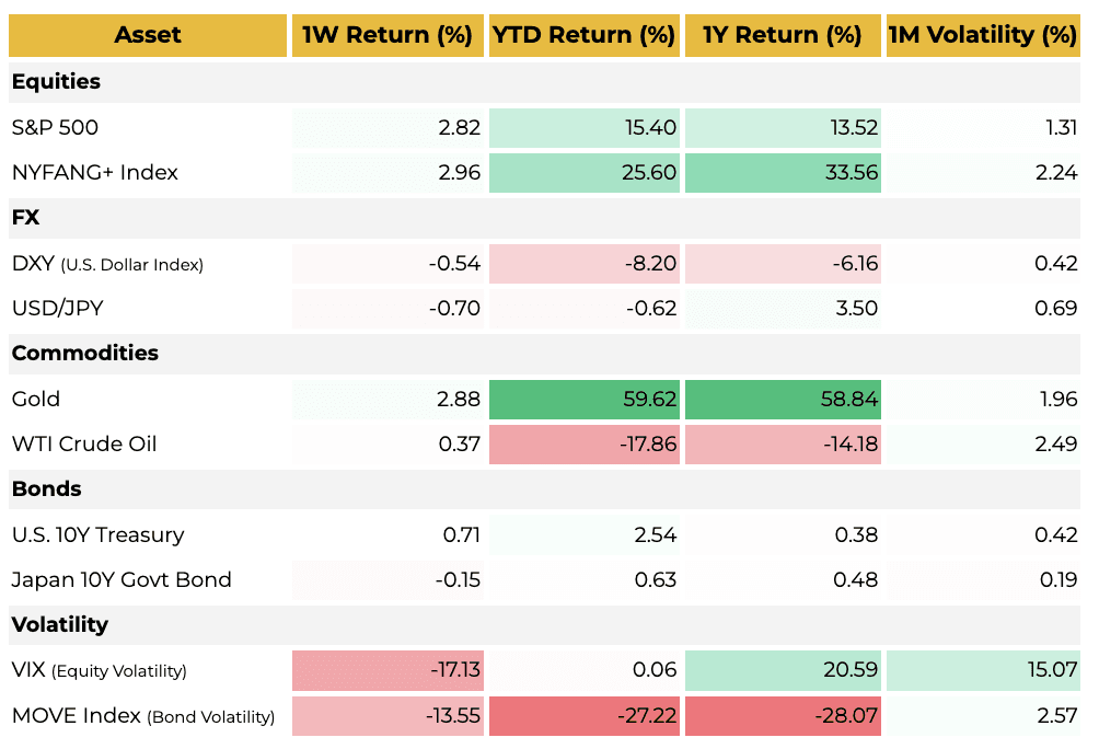 - 원자재: 금(Gold)은 주간 2.88% 상승하며 랠리를 이어갔습니다.