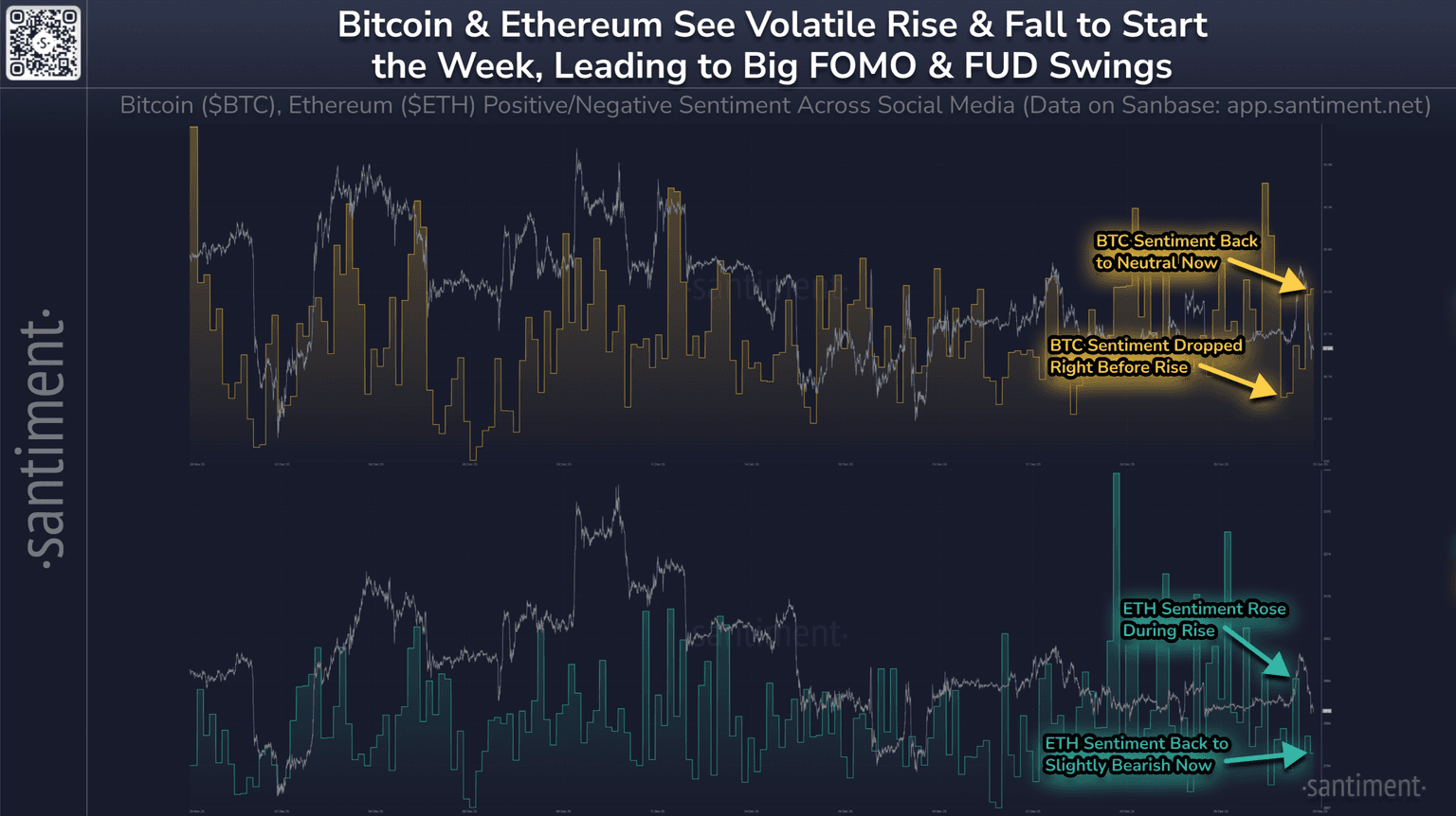 π Following the conclusion of Christmas weekend, Bitcoin surged back above $90K and then fell below $87K. The rise came while FUD was becoming very high, as us