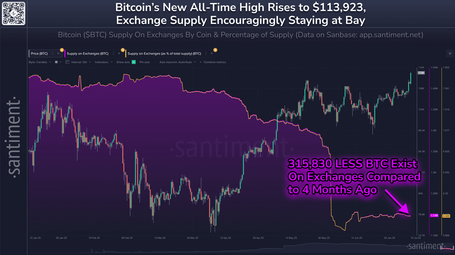 π Bitcoin has made yet another historic all-time high, surging to a market value of BTC's +13.6% price rise since its June 22nd local bottom, traders are not showing eagerness to move coins back on to exchanges (to potentially sell).