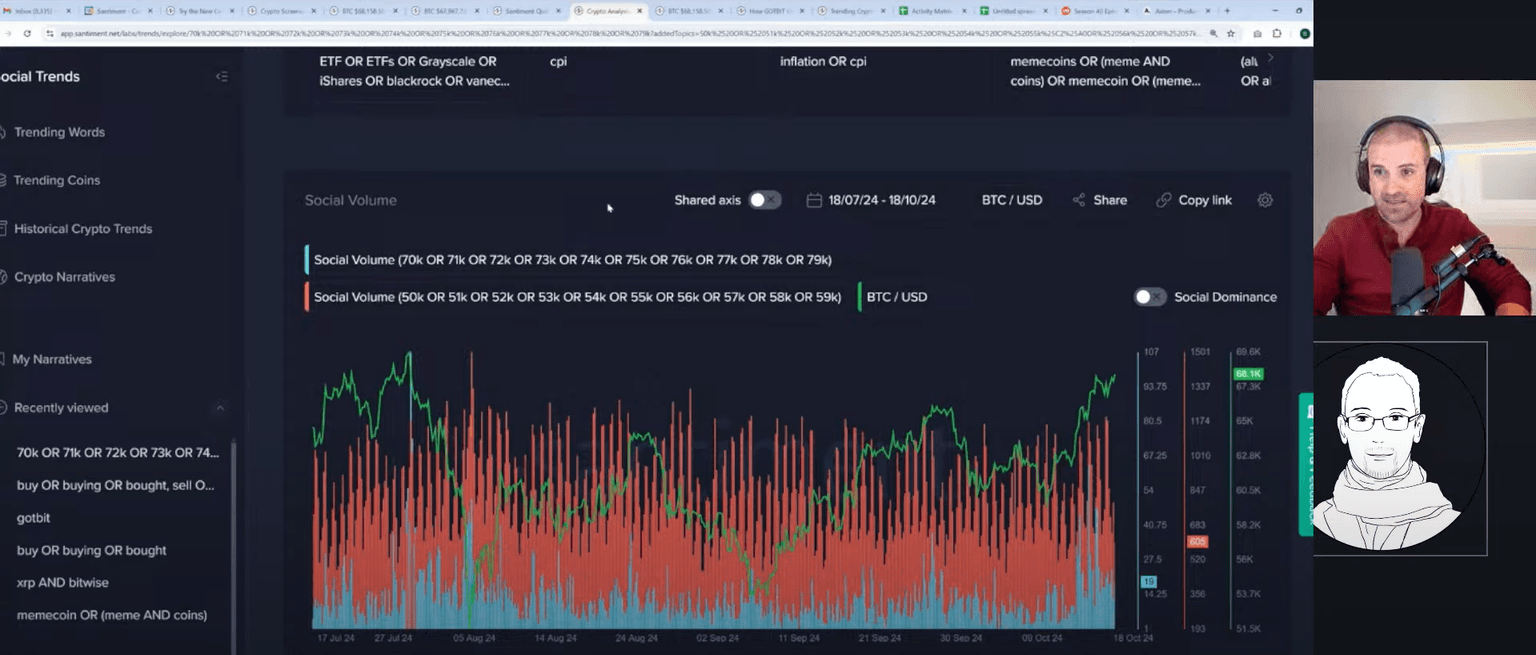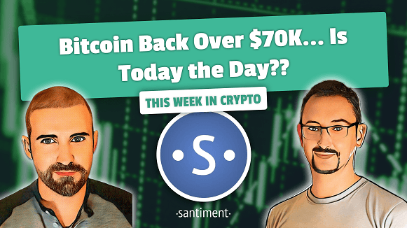 This week, Brian Quinlivan, Santiment's Director of Marketing, and Maksim Balashevich, the CEO, shared their thoughts on what's happening in the crypto market. They talked about Bitcoin's exciting rise towards $70K and the wild world of meme coins. Their insights are super helpful for anyone trying to make sense of unpredictable markets. In this post, we'll break down the main points from their chat, including some cool new tools from Santiment and the latest trends you should know about.