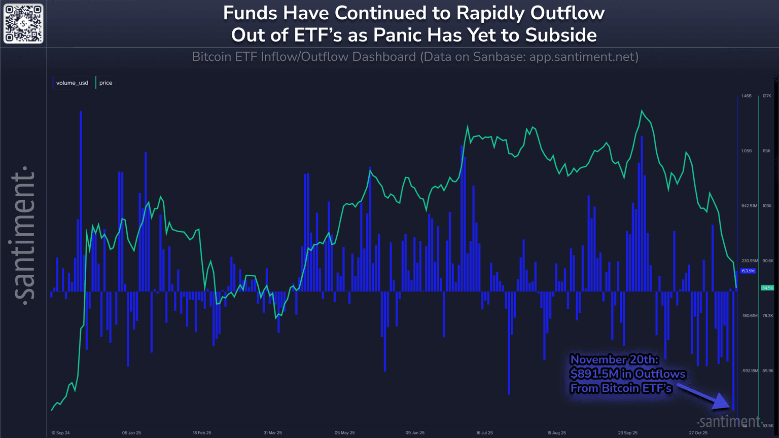πΈ Bitcoin ETF's are seeing an enormous level of outflows, declining by a total of -891,500,000, the largest of the year.