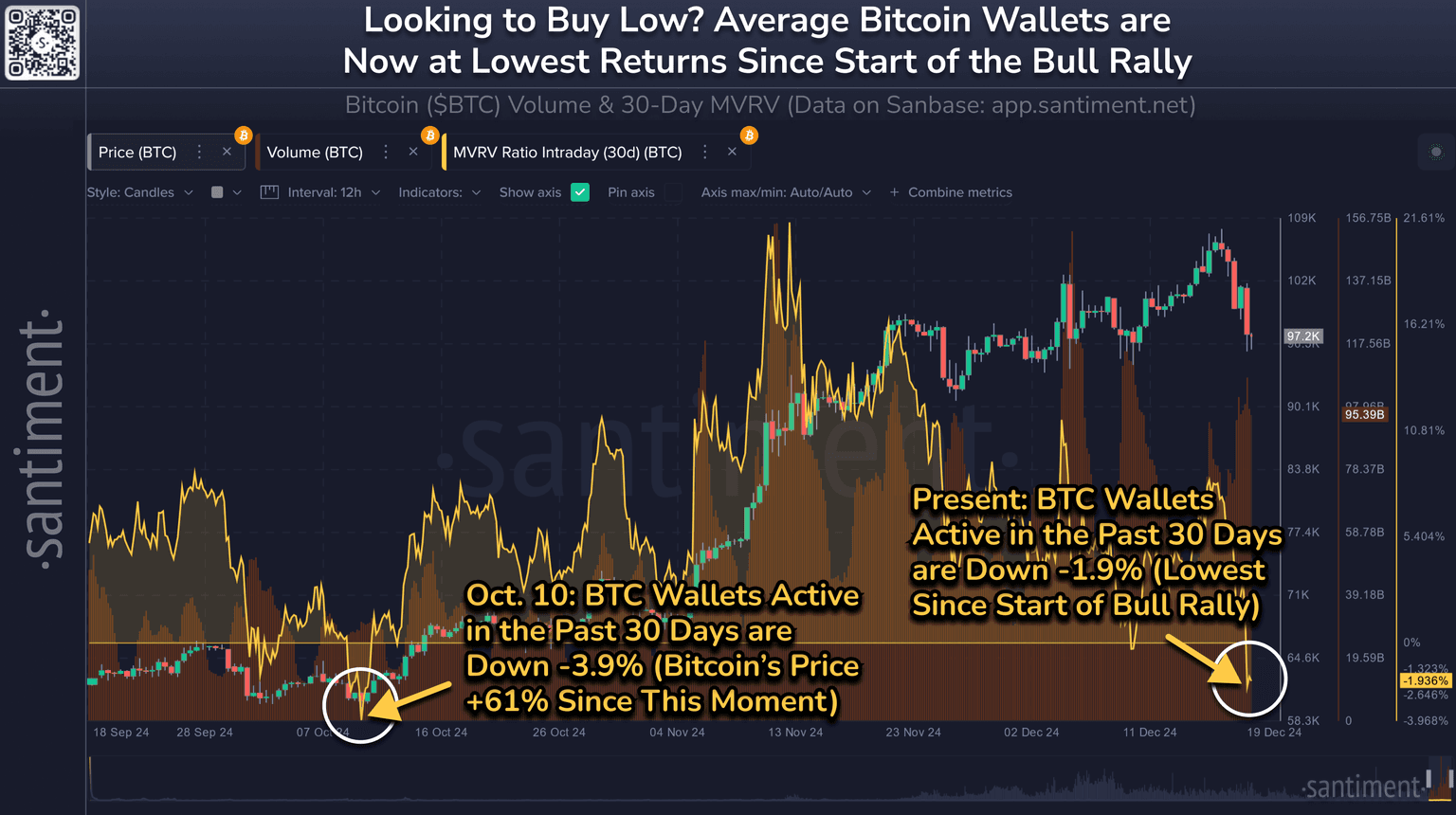 π When looking to buy low (or sell high), don't just look at prices... Look at how competing traders have performed. Bitcoin's average returns (based on wallets making at least 1 transfer in the past 30 days) have a -1.9% return, despite BTC's all-time high happening just over 3 days ago.