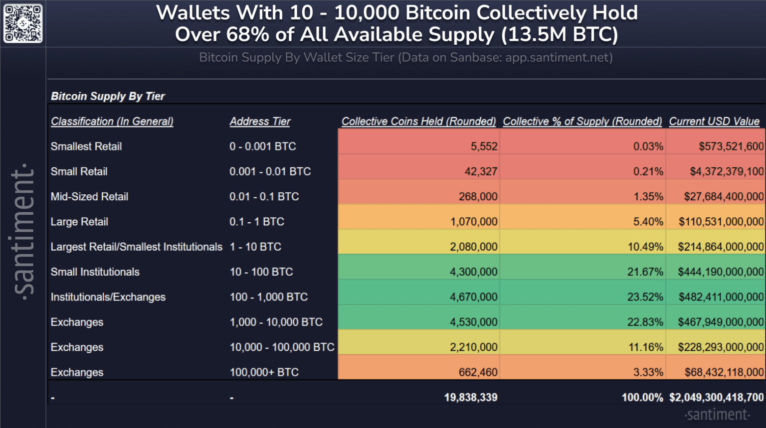 Bitcoin Wallets With 10-10K BTC Hold Just Over Two Thirds of Entire Supply