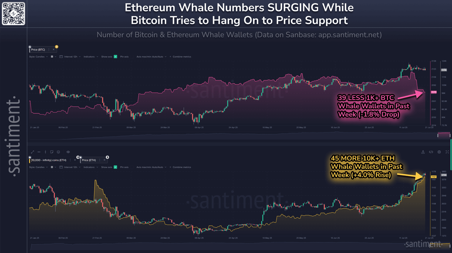 Bitcoin Whale Numbers Drop, Perhaps Moving Over to Ethereum?