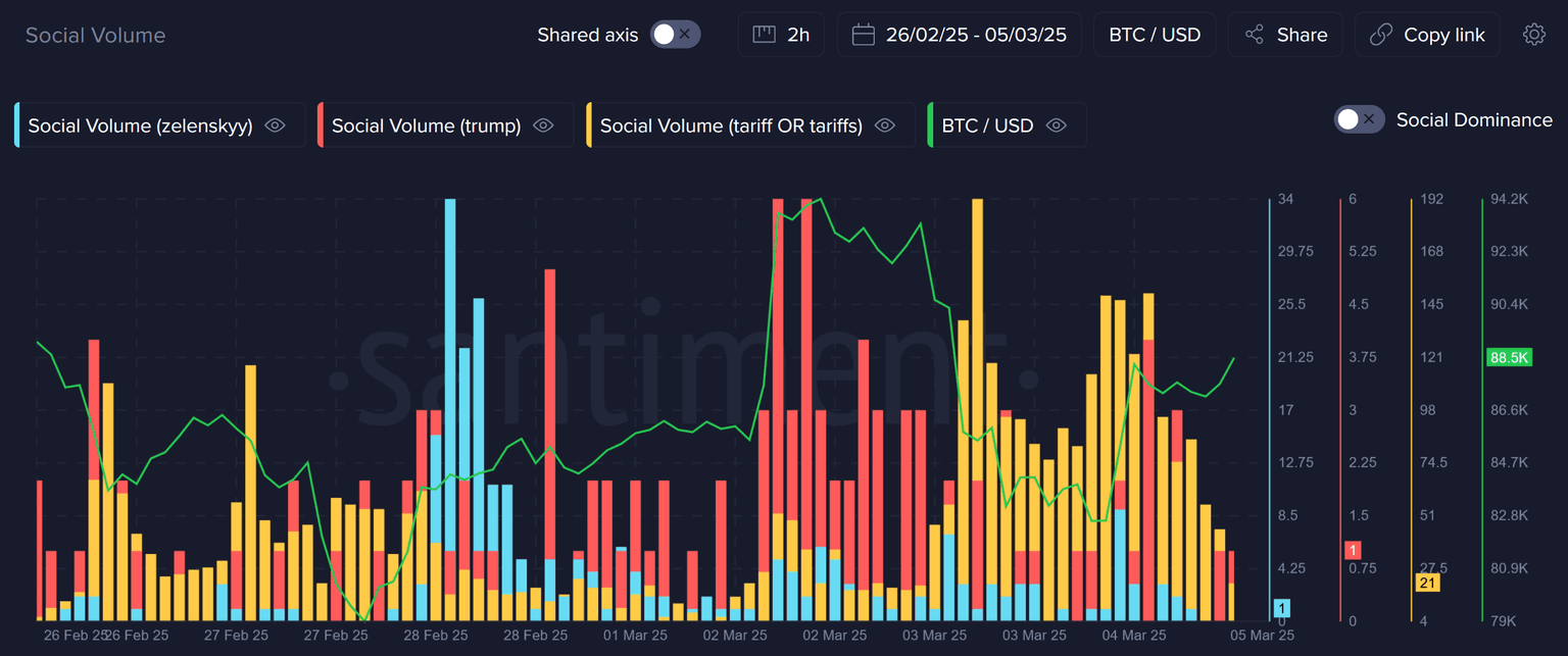 On Feb 28, 2025, a heated exchange between Trump and Ukrainian President Volodymyr Zelenskyy in the Oval Office unsettled and polarized the crypto community. This confrontation occurred amid discussions of a potential end to the war between Russia and Ukraine. The meeting coincided with expectations of impending US tariffs on key trading partners, raising concerns about global economic stability. In the graphic below, we can see the moments in which: