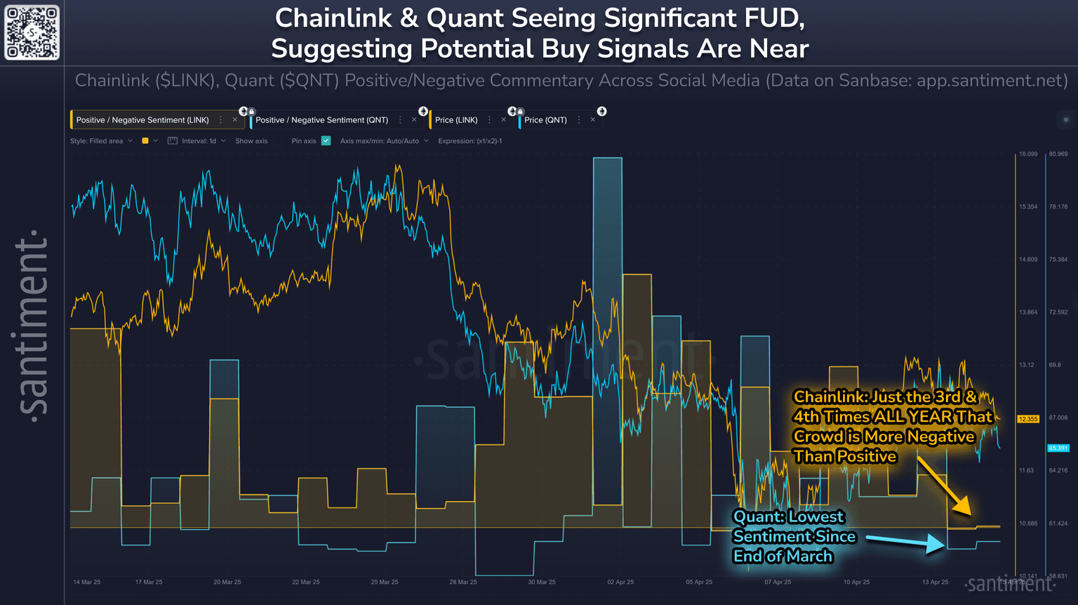 ๐ฎ As crypto markets range, keep an eye on the FUD forming around Chainlink and Quant. Their 3-week price dips have made traders grow impatient. Markets typical
