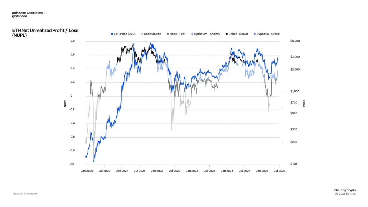 Glassnode’s Net Unrealized Profit/Loss (NUPL) metric shows that Ethereum investor sentiment recovered from capitulation to belief , signaling a dramatic shift in market psychology. This rebound helped drive ETH’s Q2 rally and may support continued accumulation if macro tailwinds persist.