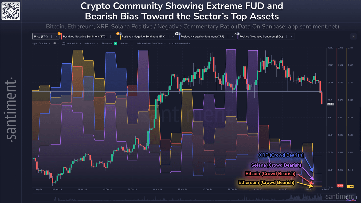 π With crypto's slide and Bitcoin's fall down to $86K today, the community's sentiment levels are essentially at rock-bottom. πͺ Bitcoin $BTC: Extreme crowd be