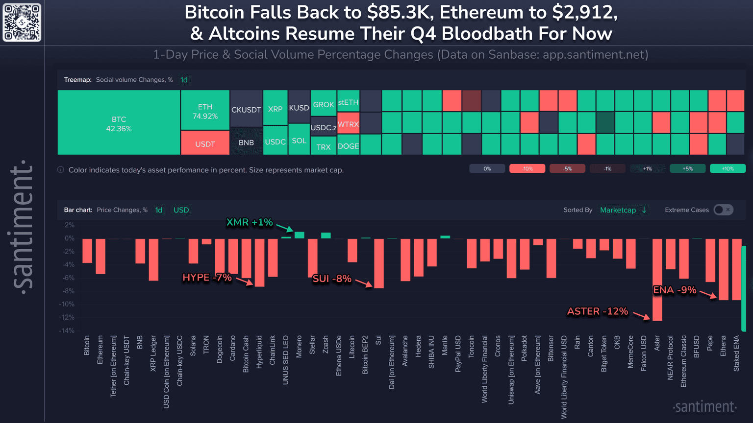 π Monday crypto markets didn't quite kick off the week how crypto traders were hoping. Bitcoin's $85K support still holds for the time being. Notable fallers i