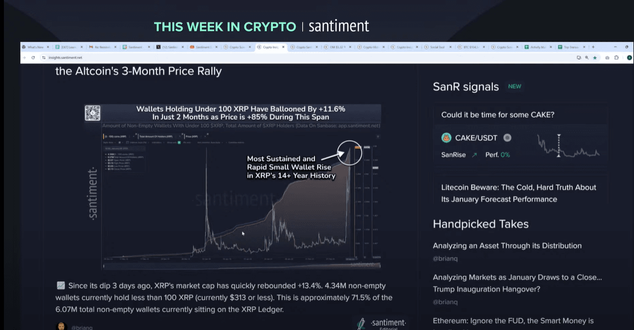 In the final days of January 2025, Santiment's latest market update brings crucial insights into the crypto market's sideways movement. Brian and Maksim explore everything from memecoin disappointments to whale behavior patterns. This week's analysis reveals intriguing developments in XRP's retail surge and potential bear market signals that every crypto investor should know about.
