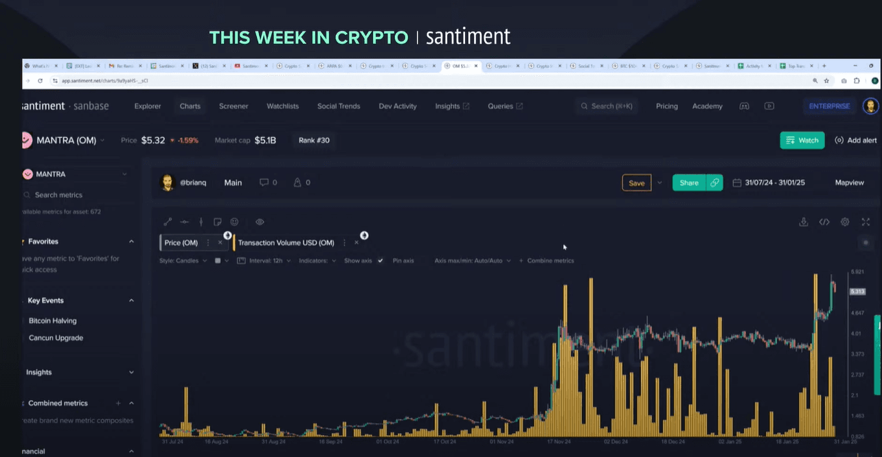 This week's analysis highlights the importance of watching whale behavior, retail sentiment, and political factors in crypto market movements. While some assets like Mantra show remarkable growth, broader market indicators suggest caution. Santiment's data-driven approach continues to provide valuable insights for navigating these complex market conditions.