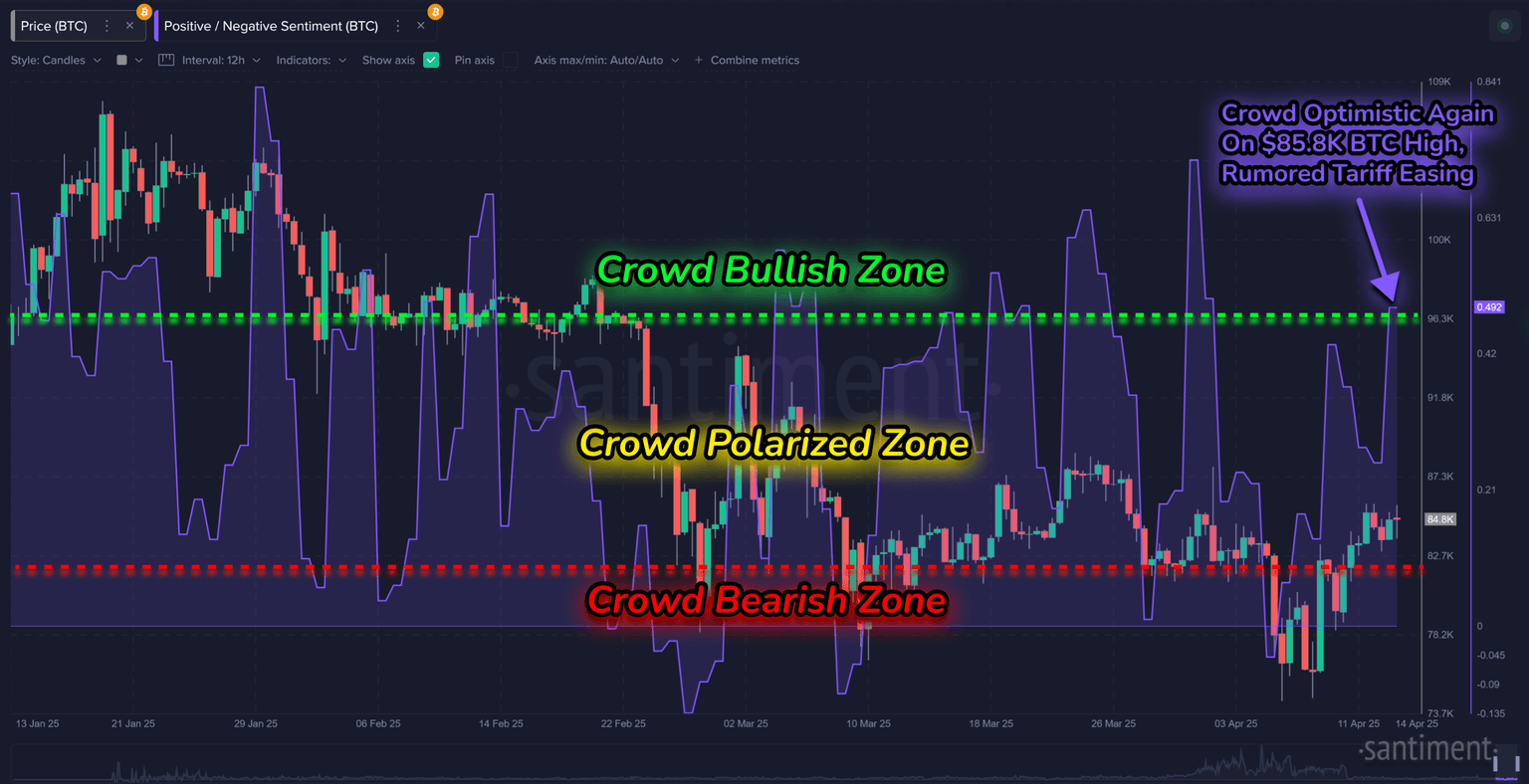 Behind Bitcoin’s rise is a combination of easing tariff concerns and improving blockchain fundamentals. But as we know, the retail crowd really doesn't care too much about the reasoning for its ebbs and flows very often... most traders have just been anxious for a breakout. And it looks like this price rebound has been enough to skew traders into a more bullish mood than we have seen since the start of the tariff madness back on April 2nd.