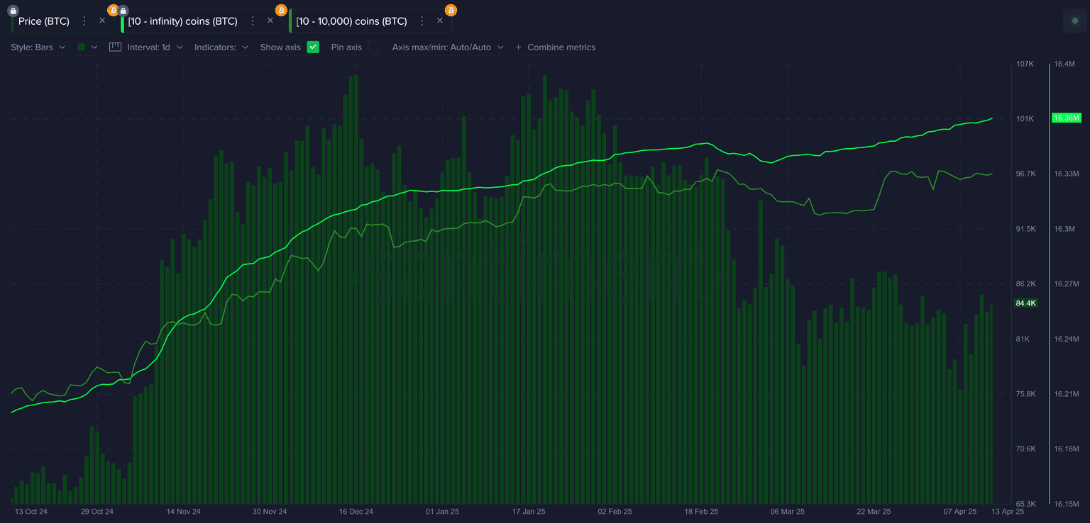 - Key Stakeholder Accumulation: Wallets with 10 or more BTC have continued to rise in holdings, launching to an all-time high 16.36M BTC held, while retailers continue to shed their coins during the volatility.