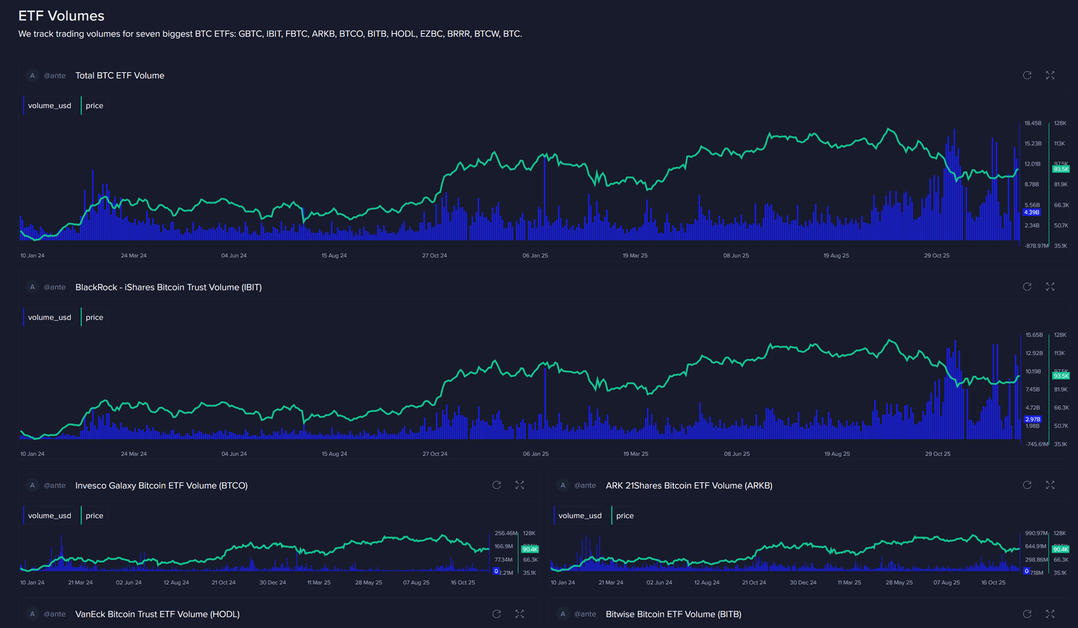 Take, for instance, this notated chart of BTC's 2 years of ETF volume data: