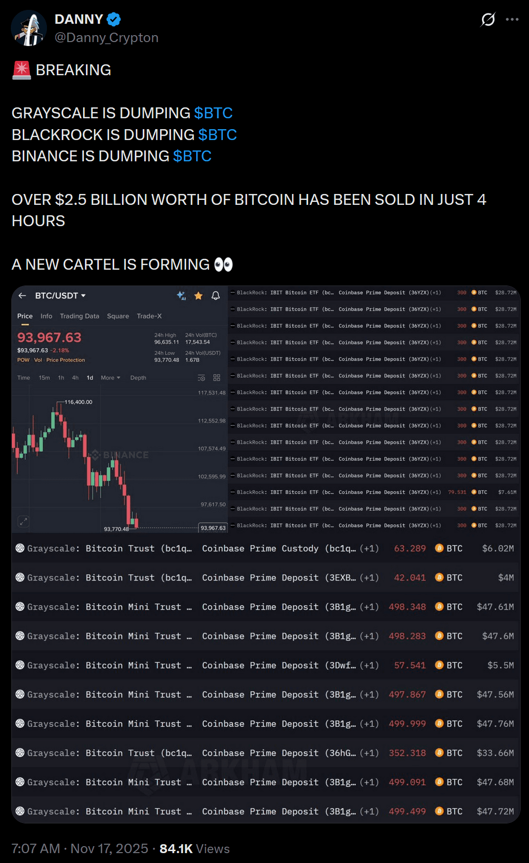 You have others pointing to whale wallets trimming their bags (note their wording of "dumping" vs. "dumped", implying that the same dumps will indefinitely continue: