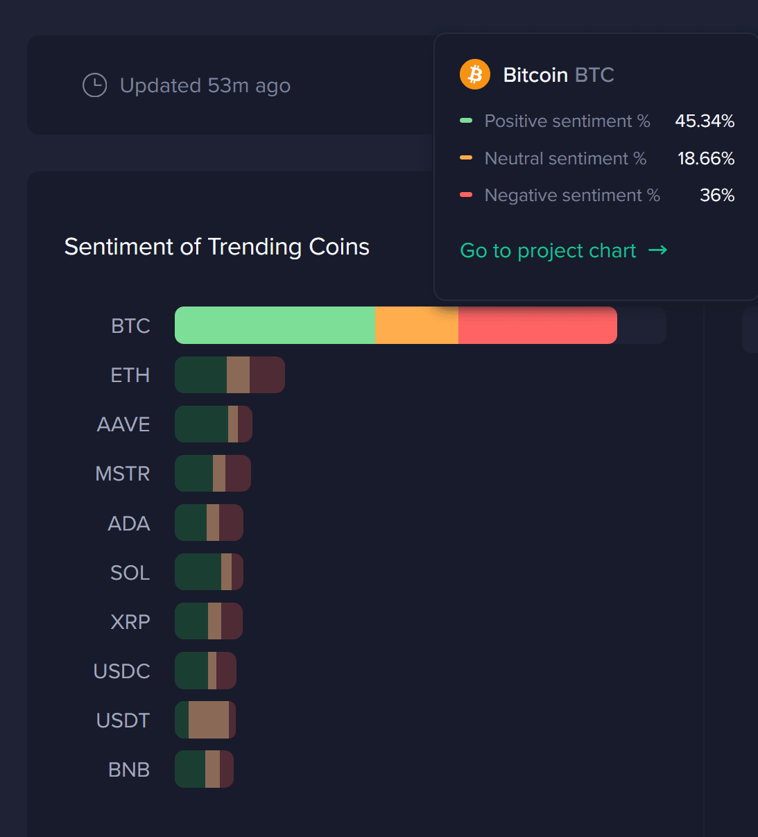 Finally, take a look at how much Bitcoin is being discussed compared to the other top trending tokens right now.