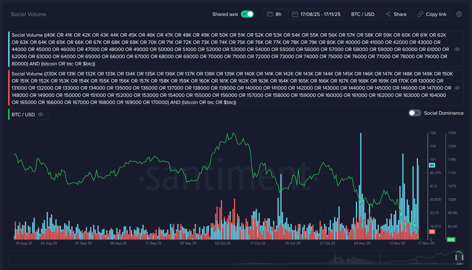 π₯ Total mentions of Bitcoin prices between 170K