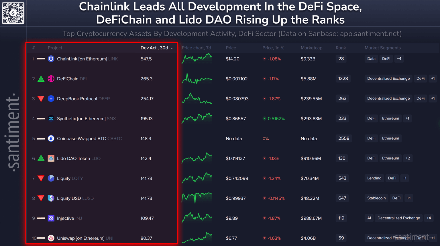 π§βπ» Here are crypto's top 10 DeFi projects by development. Directional indicators represent each project's ranking positioning since last month: β‘οΈ 1) Chainli