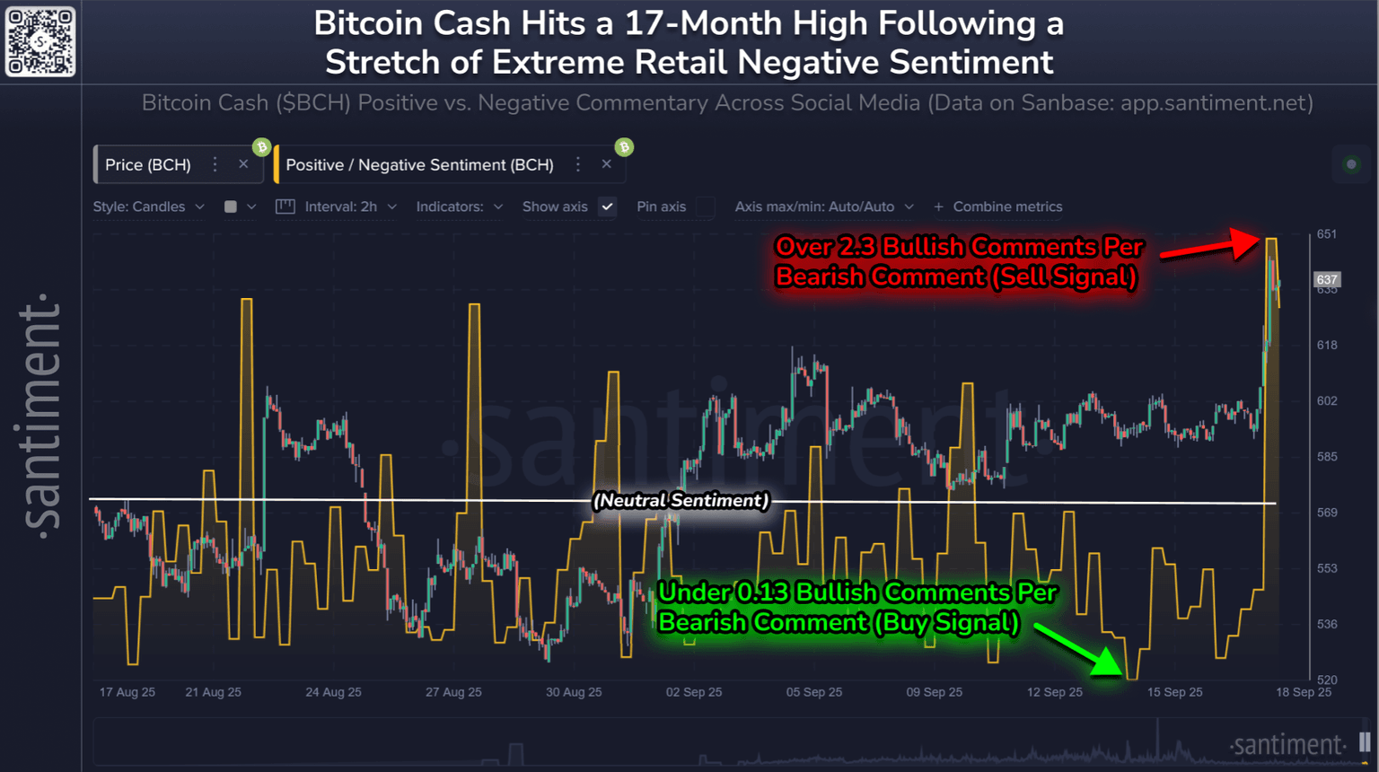 π¨π₯³ Bitcoin Cash has jumped +7% against the price of Bitcoin, reaching a market value above $644 for the first time since April, 2024. The 17-month high came after extreme bearish sentiment was coming in for the 16th ranked market cap in crypto.