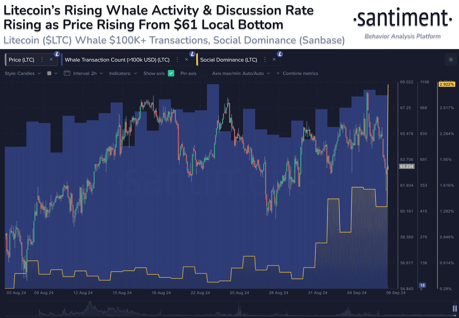 β‘οΈ Litecoin is seeing a consistently higher level of whale activity than usual since late August. On top of this, the level of discussions toward the 19th ranked market cap OG asset has erupted in a big way. Whether or not you are a fan of LTC, this is worth keeping an eye on.