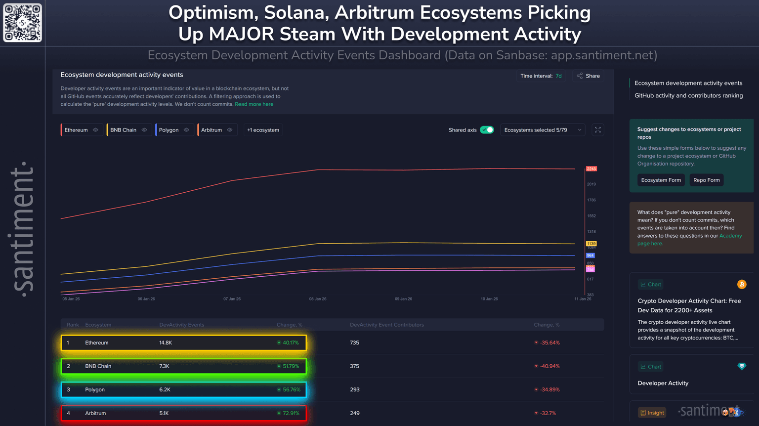 π§π» With holiday and new year festivities now behind, crypto ecosystems have picked up significantly. Over the past week, here are the weekly net changes in notable development activity events for the top 10 ecosystems: