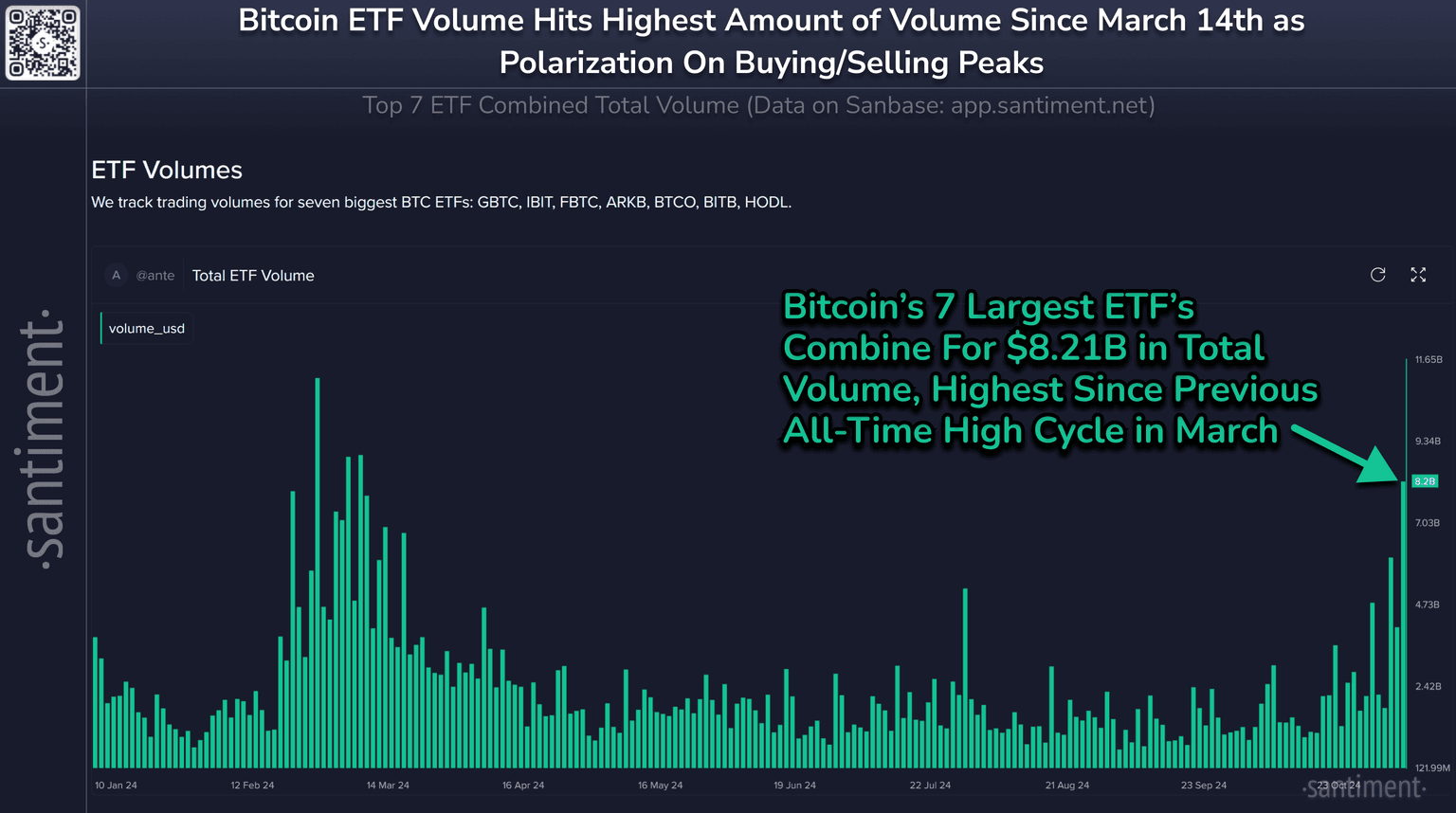 π Bitcoin's 7 largest ETF's have combined for $8.21B, the largest day since the day BTC peaked at the March 14th then all-time high of $73.7K. This indicates m