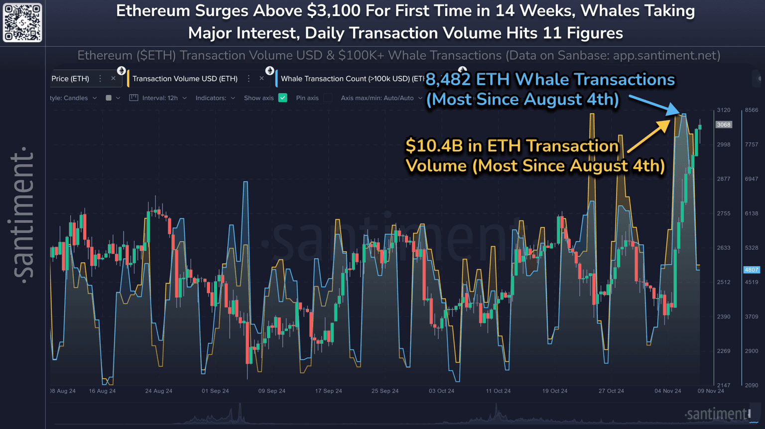 Whale transaction data indicates a major spike in key stakeholder activity. These addresses played a major part in helping it reach a 14-week high. ETH transaction volume has also climbed as high as $10.4B in recent days.