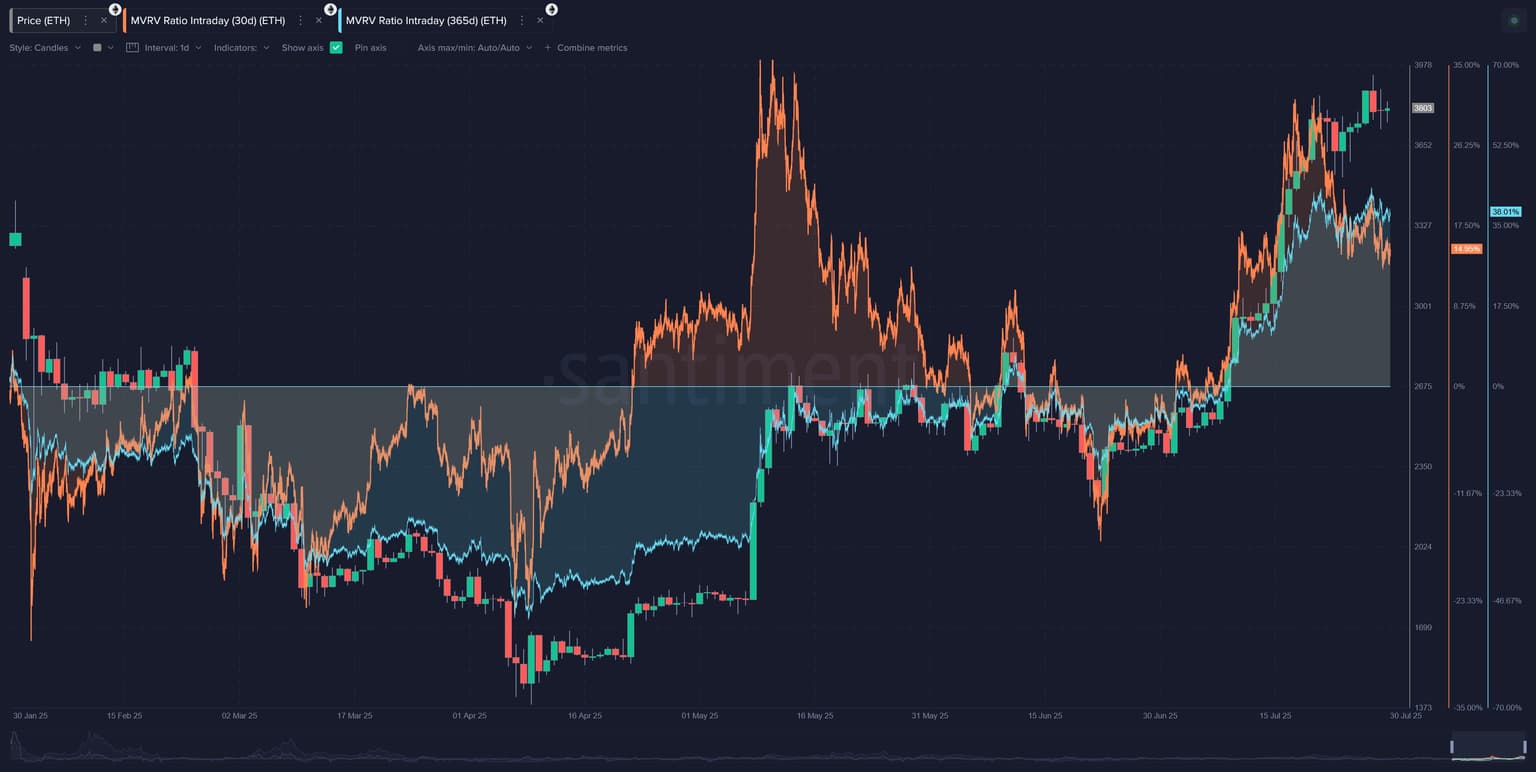 The average returns of $ETH traders that have made at least one transfer in the past year sits at a whopping +38%. Meanwhile, average returns over the past month sits at +15%. Both of these are unusually high. This metric is better known as MVRV (Mean Value to Realized Value)