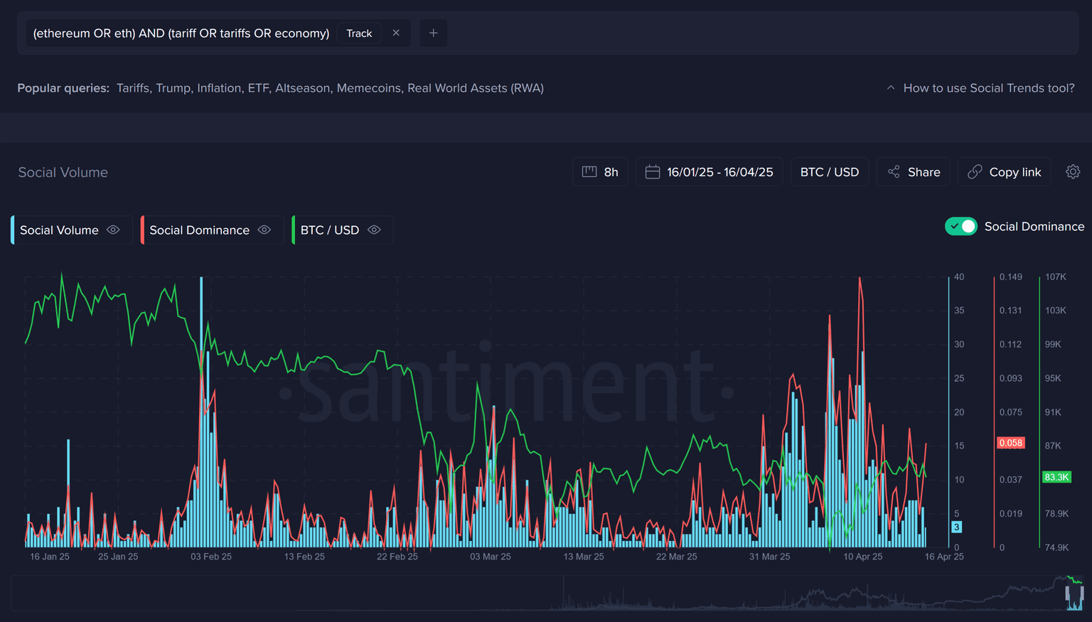With Ethereum's market value dropping 61% over the past 4 months, traders have skewed bearish toward the #2 market cap asset. Many appear to be patiently waiting for the global economic uncertainty to pass before scaling up their usual frequency of $ETH and other altcoin transactions. We can visibly see the increased sensitivity toward Ethereum discussions and tariff/economy news as prices have really threatened long-time support levels.