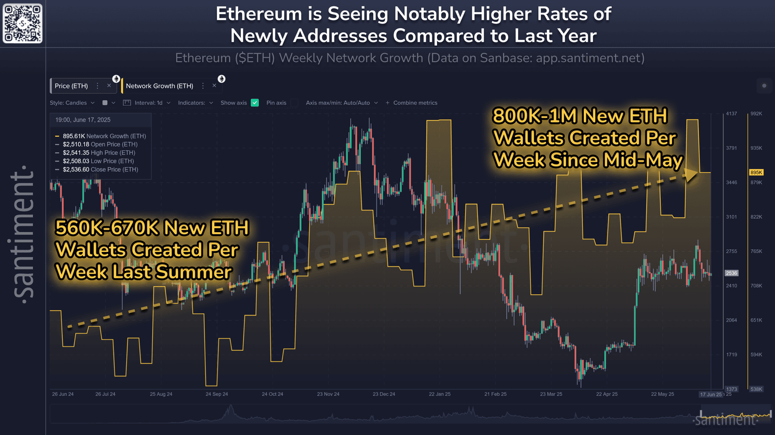 π As Ethereum trades right at the $2,500 level, the utility and growth of the network continues looking healthier than ever. The amount of new weekly $ETH addr