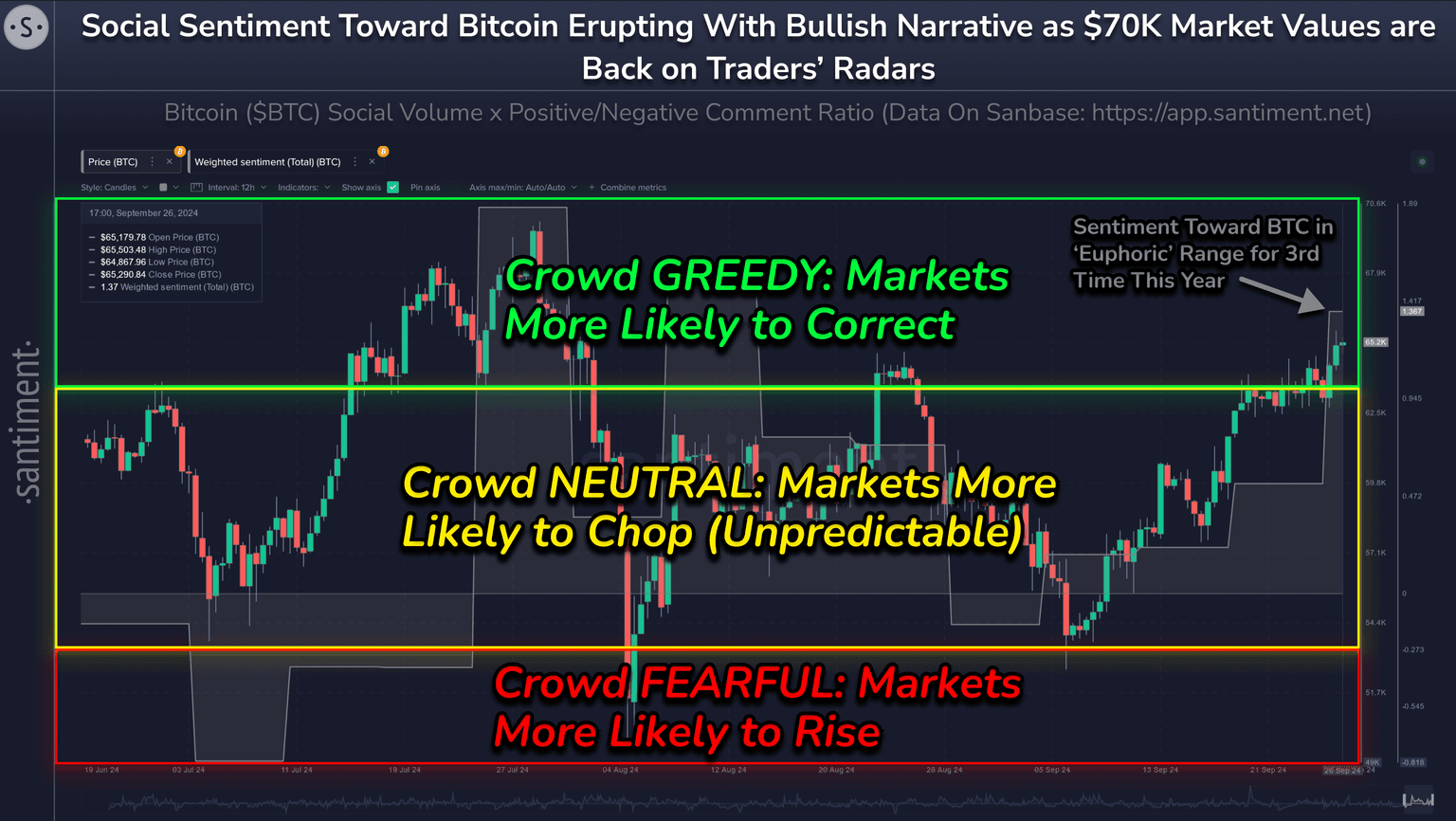 Expect some testing of bulls' patience as sentiment has crossed into high FOMO (greedy) levels. This typically coincides with upcoming local tops. They may happen today, this weekend, or in the upcoming weeks, depending on how whales behave at these levels.