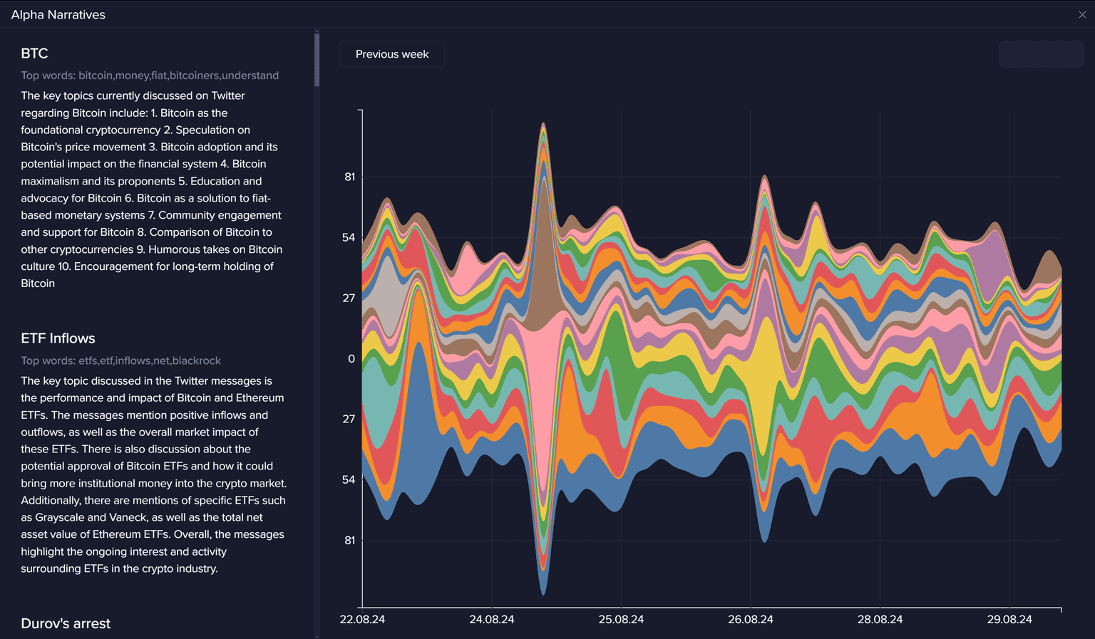 As a reminder, our rapidly developing "Crypto Narratives" chart is a fantastic alternative resource to the Alpha Narratives page, showing even more specific queries and search topics that are more targeted on niche topics rather than broad scope conversations.