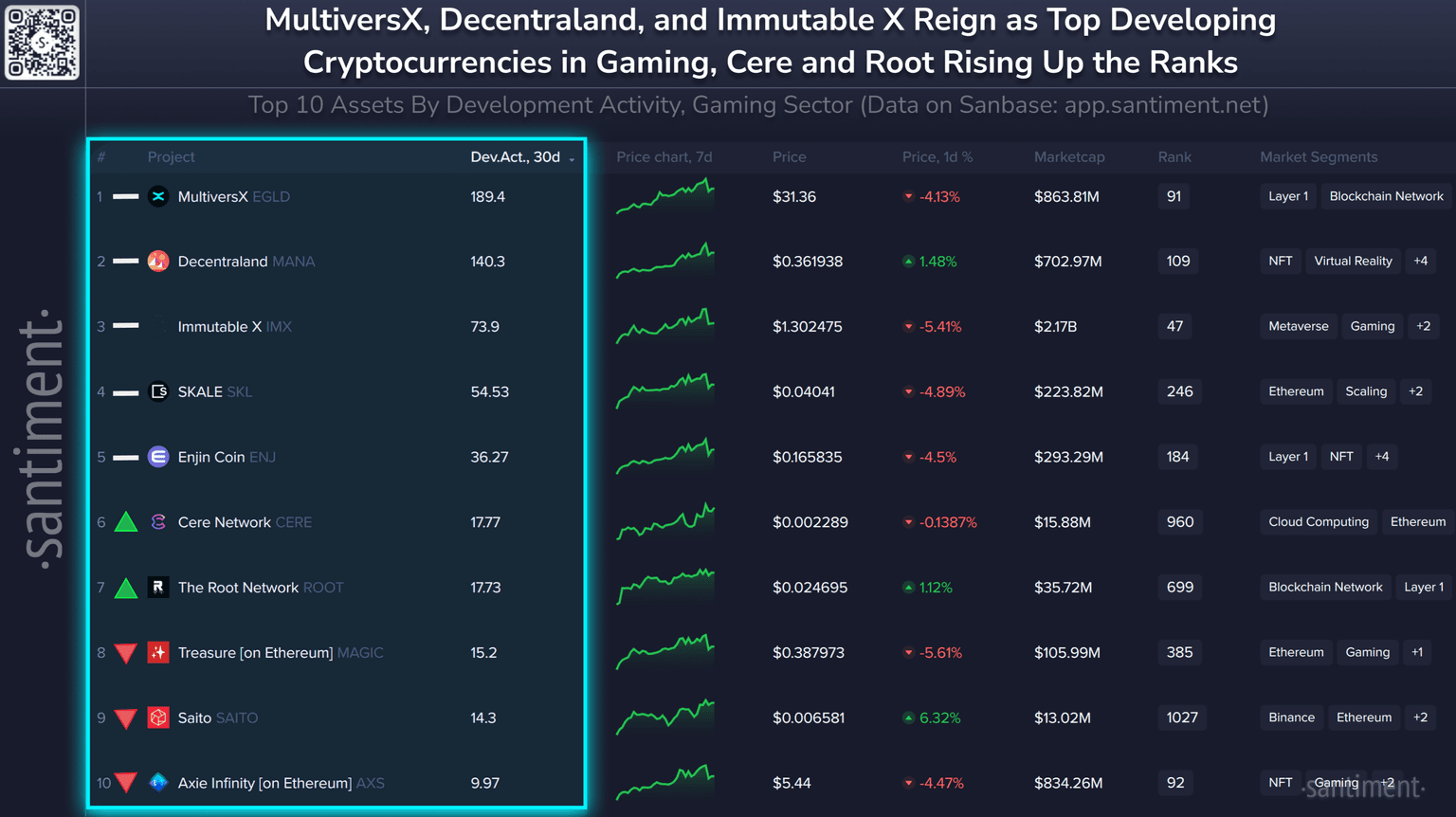 ๐งโ๐ป Here are crypto's top gaming projects by development. Directional indicators represent each project's ranking rise or fall since last month: โก๏ธ 1) Multive
