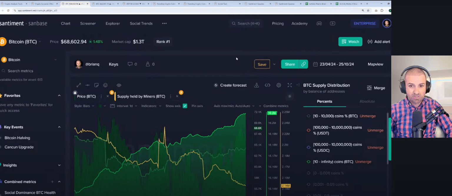 With the US election around the corner and market sentiment changing, having solid data is more important than ever. Brian's insights show how crucial it is to keep an eye on whale movements, social media chatter, and on-chain data to make smart investment choices. Santiment's tools give investors a leg up, helping them stay on top of market trends and seize opportunities. We encourage you to check out these resources, keep up with Santiment's updates, and stay alert.