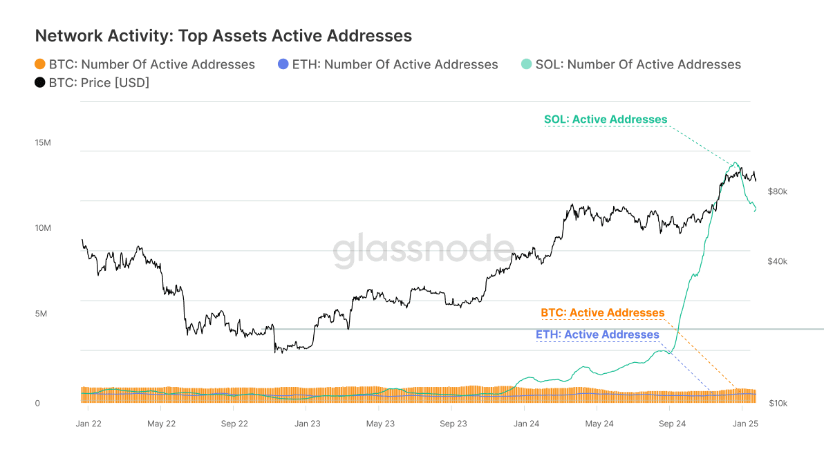 - Retail investors have returned , with Solana seeing an influx of new capital and surpassing Ethereum in active address count.