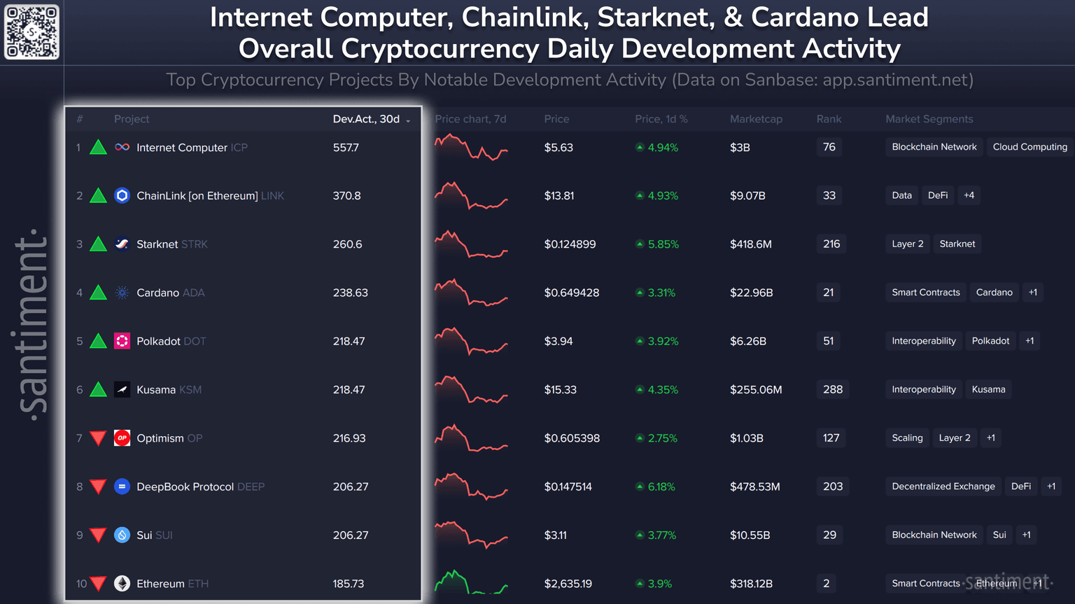 ICP, LINK, STRK Top the List of Crypto's Development Leaders