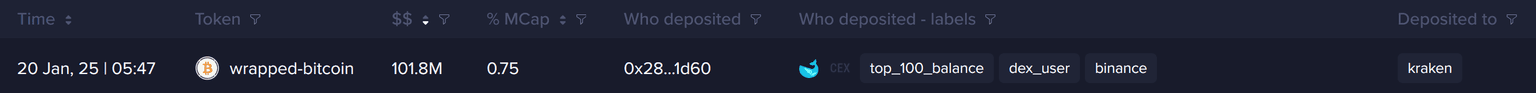 ** $101.8M Worth of Wrapped Bitcoin Deposited to Kraken**