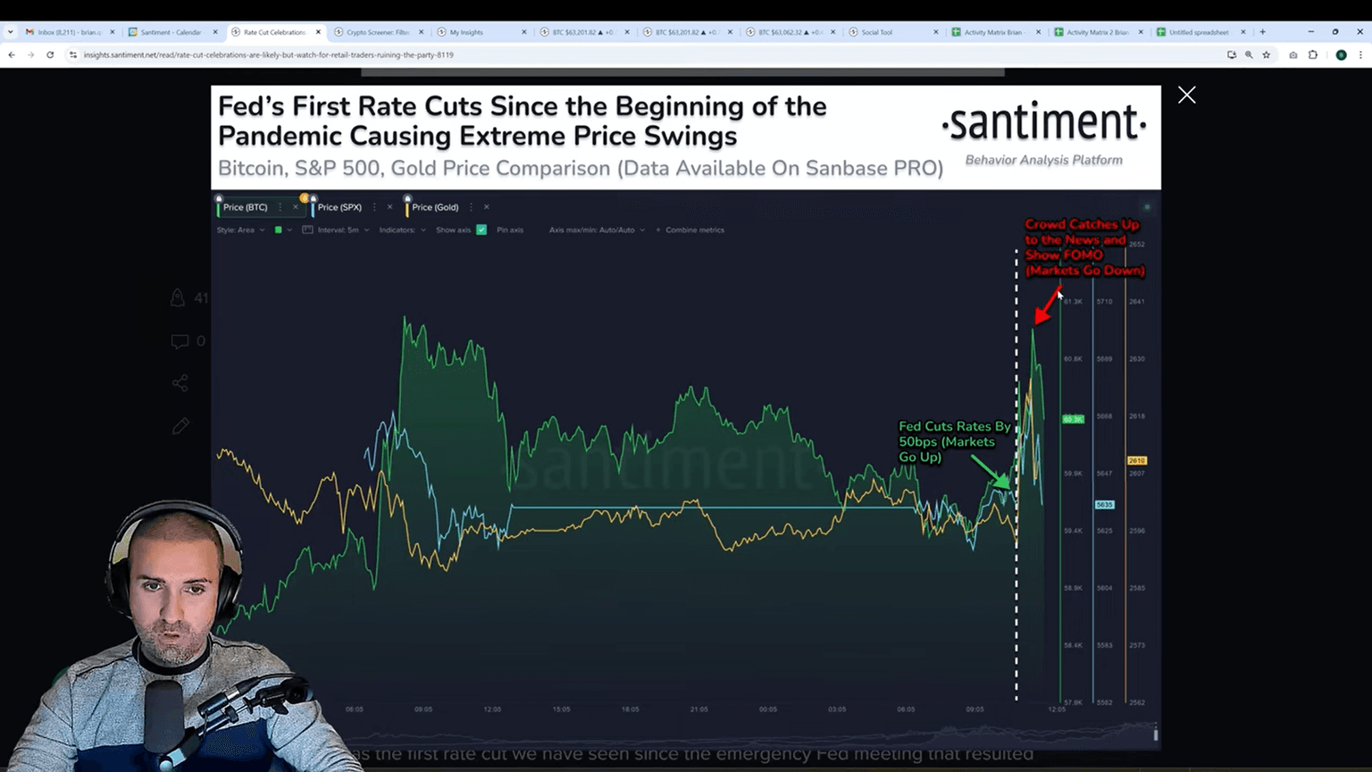 In the latest Santiment market update, Brian Quinlivan, Director of Marketing, and Maksim Balashevich, CEO of Santiment, dive deep into the latest crypto trends. From market volatility to on-chain data, they provide a fascinating look at how investors can use data to navigate the unpredictable world of crypto. In this article, we break down the key takeaways from their discussion, including the impact of the recent US Fed rate cut, social sentiment analysis, and on-chain metrics that could signal future market movements.