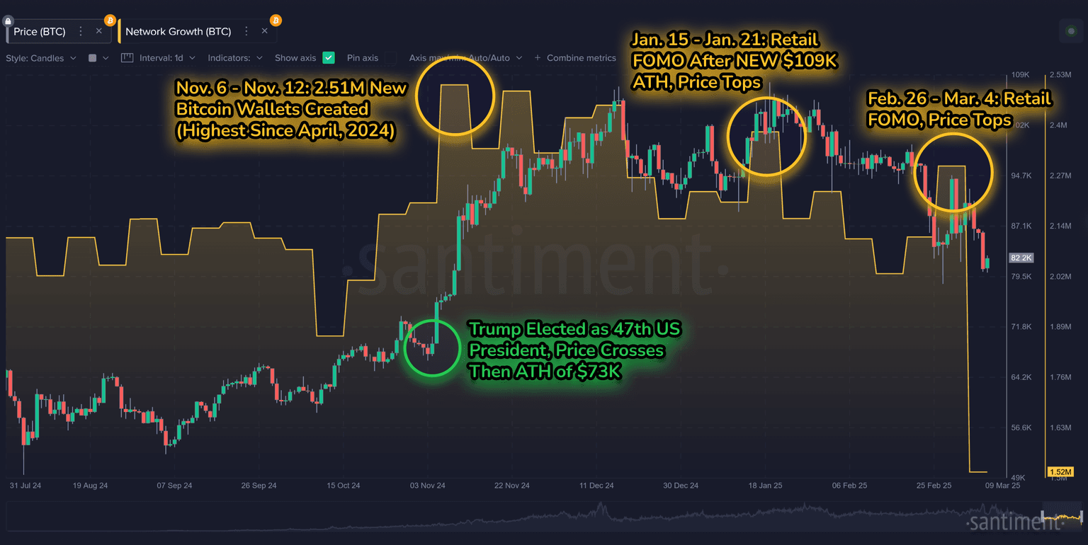 Bitcoin's on-chain evidence points to an immediate influx of network growth, whale accumulation, and optimism across the majority of crypto circles after the pro-crypto candidate won the US election. We can see how new wallet creation immediately erupted, hitting 2.51M BTC wallets created in the subsequent week after the news hit.