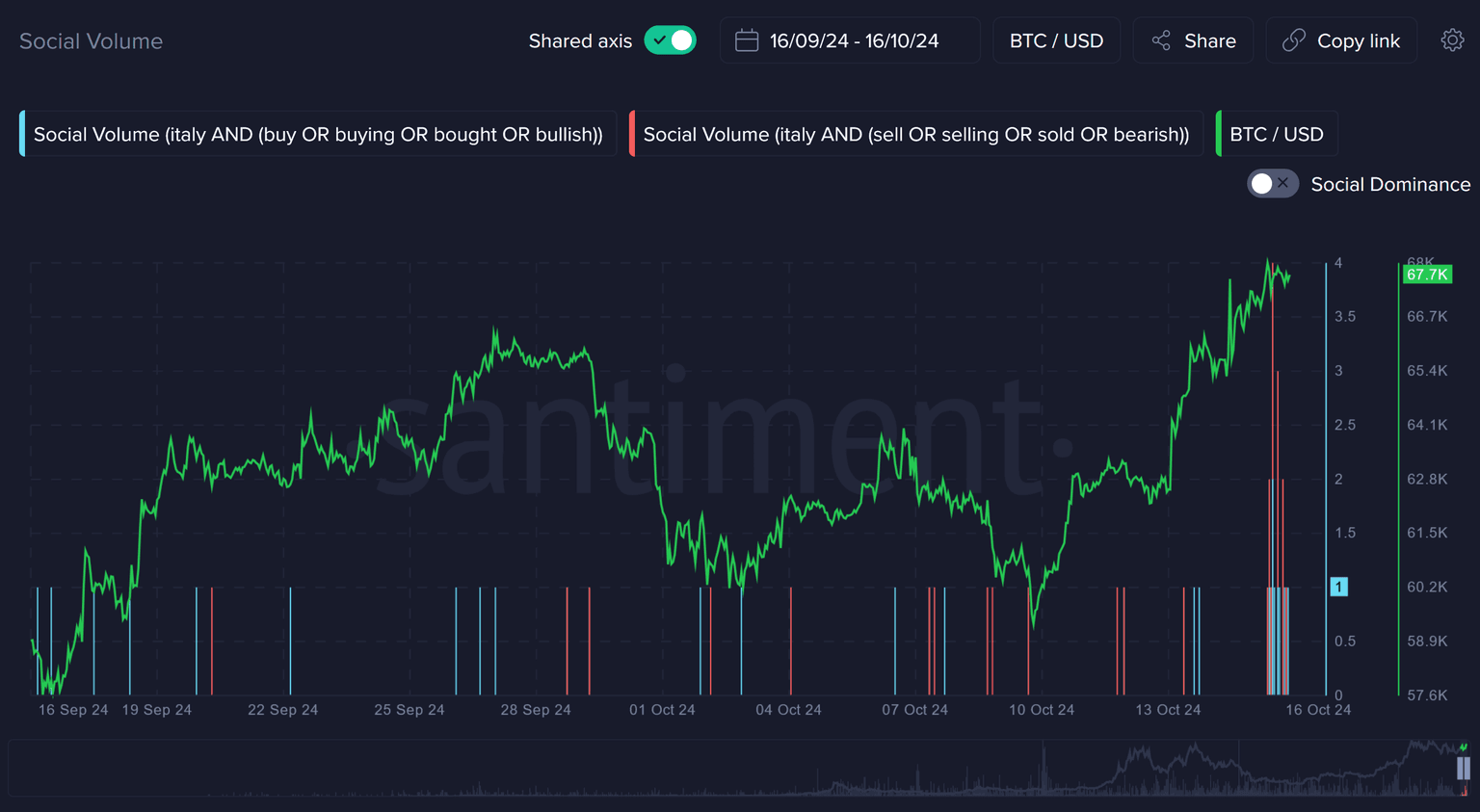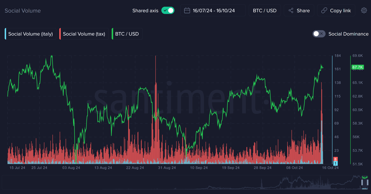 This wave of discontent is reflected in Santiment's data, which shows a massive uptick in social volume around the terms "Italy" and "tax." According to the latest metrics, the mention of Italy in social circles has hit unprecedented levels, particularly in conjunction with words like "selling" and "bearish." These spikes in activity indicate that traders and investors are concerned about the long-term ramifications of this tax increase, viewing it as a catalyst for an exodus of capital from Italy to more favorable jurisdictions.